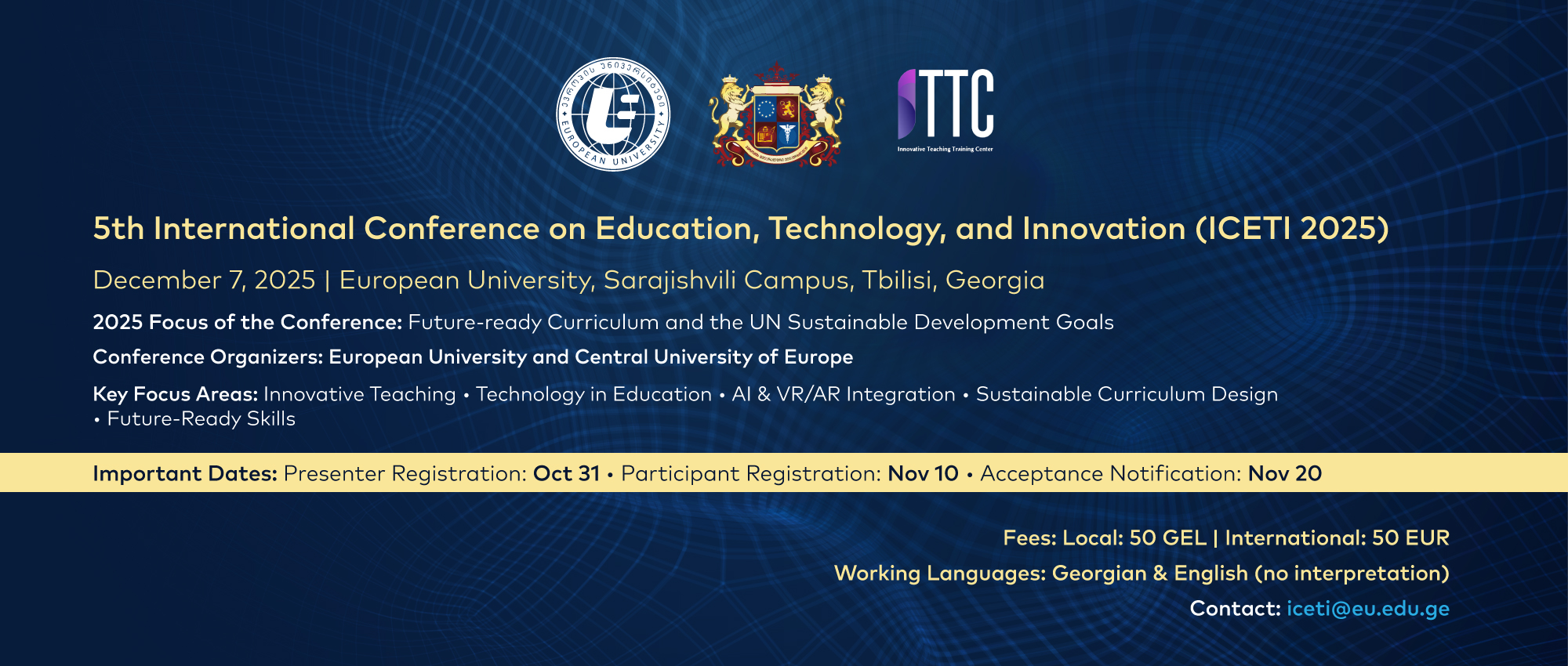 The International Conference “Education, Technology, and Innovation” is organized by European University in collaboration with the Central University of Europe.